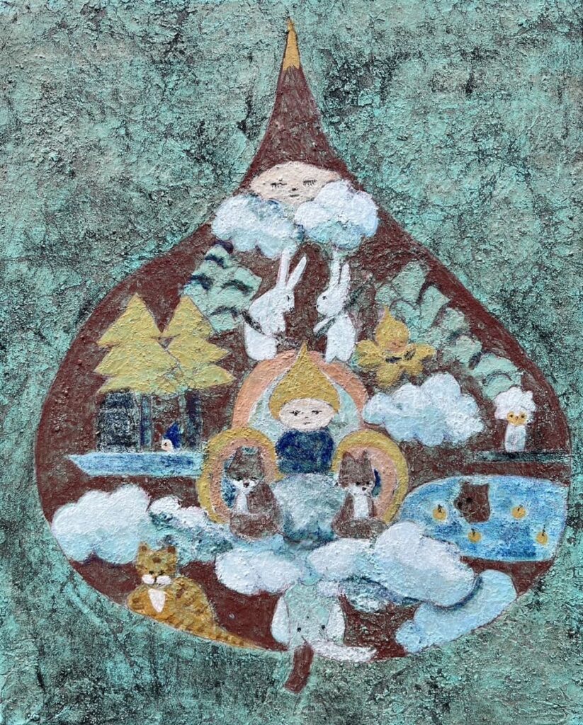 這些動物角色,從不只是圖像、擬人或裝飾性元素,而是承載深厚精神意涵的存在者。牠們有自己的氣質、節奏與故事,是她與世界對話時的中介者,也是她藝術語言的延伸。她在畫布與陶塑中反覆描繪牠們的姿態,像是一場冥想,也是一種召喚,讓人們重新學會尊重那些沉默卻敏銳的靈魂,「我畫牠們,不是因為牠們可愛,而是因為牠們知道我們不知道的事。動物看得見人類看不見的東西,那是一種靈性的觀看。」